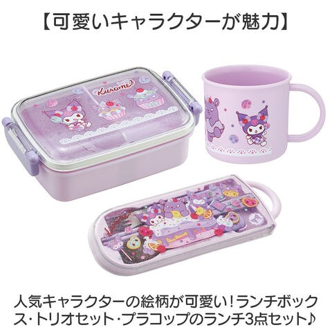 | 商品説明 | 【可愛いキャラクターが魅力】人気キャラクターの絵柄が可愛い!ランチボックス・トリオセット・プラコップのランチ3点セット♪【お名前シール付き】3点セット全てにお名前シールがあって便利。≪ランチBOX≫【ふんわり盛り付け】ふわっと盛り付けできるドーム型フタタイプのランチボックス。安心の日本製。【デコレーションを崩さず美味しさ持続】ドーム型に盛り上がったフタでおかずの押し潰れを防ぐ!お弁当の時間まで、美味しい食感が持続。【盛り付けに便利な高い仕切り】おかずが片寄らずに盛り付けられる、高い仕切りが付属。【汁漏れを防ぐパッキンと留め具】お弁当箱のフタは、しっかり密封できるパッキンと2ヶ所の留め具付きで、汁漏れしにくい!【お子さまも満足な容量】お弁当箱の容量約450mlとお子さまも満足なサイズ感!【レンジと食洗機対応】フタを外した状態での電子レンジ温めOK、さらに食器洗い乾燥機での洗浄OKでお手入れも楽ちん。≪カトラリーセット≫【開閉がスムーズ】ケースは指で引き出すスライド式で、お子さまでもラクラク開閉OK。【使い分けできるトリオセット】スプーンとフォークは持ちやすい形状。箸の先端は食材をしっかり挟める滑り止め加工済み。【お手入れラクラク】ケースとフタは外して洗浄。全て食洗機対応でお手入れしやすく、忙しい毎日の強い味方♪【安心設計】衝撃に強く丈夫な構造で、こわれにくく長く愛用できるのが嬉しい。≪プラコップ≫【小さな手にも優しくフィット】取っ手が付いていて持ちやすく、お子さまが飲みやすい容量200mlサイズ。【落としても割れにくい】丈夫なポリプロピレン素材で、元気いっぱいのお子様でも安心して使える!【電子レンジで温め可能】耐熱温度は140度。電子レンジでの温め直しもできて便利◎【嬉しい食洗機対応】お手入れしやすく、忙しい毎日の強い味方♪ |