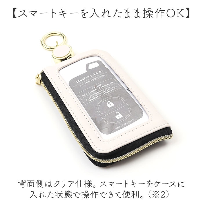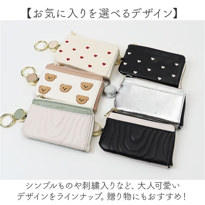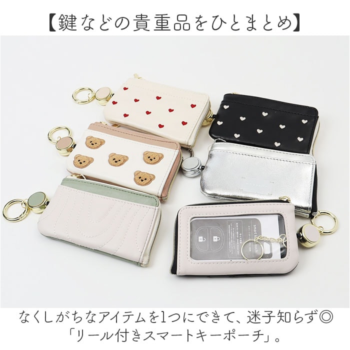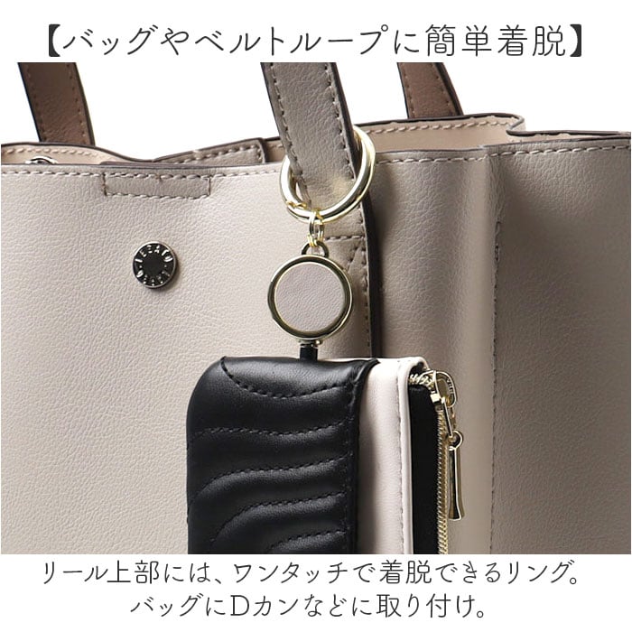 | 商品説明 | 【鍵などの貴重品をひとまとめ】なくしがちなアイテムを1つにできて、迷子知らず◎「リール付きスマートキーポーチ」。【ガバっと開くL字ファスナー】開口部がL字型に開き、中身をひと目で確認。ファスナーを閉じれば、紛失や飛び出しも防止。【鍵を仕分けできる仕切りを配置】自宅用の鍵とスマートキーを分けてIN。スマートキーの傷つきを防ぎ、出し入れもスムーズ。(※1)内側のキーリングはそれぞれの仕切りに1つずつ装備しています。【スマートキーを入れたまま操作OK】背面側はクリア仕様。スマートキーをケースに入れた状態で操作できて便利。(※2)収納可能なスマートキーのサイズ目安は、高さ約75×幅約40×厚み約15mm以内です。【駐車券やカード類も一緒に収納】内側と前面にはカードポケットを。鍵と共にまとめておけば、必要な時にすぐ手に取れる◎【ぐ~んと伸びて使い勝手抜群】しっかり伸びるリール付き。サクッと引き伸ばせて、鍵の施錠などもスマートに対応。(※3)前面ルーム内側のキーリングは伸ばせる仕様です。【バッグやベルトループに簡単着脱】リール上部には、ワンタッチで着脱できるリング。バッグにDカンなどに取り付け。【お気に入りを選べるデザイン】シンプルものや刺繍入りなど、大人可愛いデザインをラインナップ。贈り物にもおすすめ!【ポケット仕様】内側:カードポケット×1前面:カードポケット×1 |