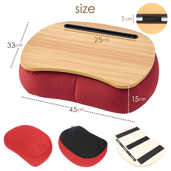 | 商品説明 | 心にも体にも心地よくフィット♪RELAX FIT(リラフィット)のテーブルクッションが新登場。クッションに取り外し可能な天板が付いた、テーブルクッション。テーブル裏の面ファスナーで、クッション裏面に貼り付けるだけ。あっという間に膝の上に乗せるミニテーブルが完成!・4通りの使い方ができて、とっても便利♪カフェテーブル…軽食やティータイムに。ワークテーブル…ちょっとしたお仕事タイムにぴったり。タブレットテーブル…差込口にお手持ちのタブレットを置いて、動画視聴もラクラク。クッション…テーブル天板を下にすれば、肘置きクッションや枕に。クッションはビーズ入りで、クセになる触り心地◎持ち運びに便利なサイズ感。リビングやベッドルームではもちろん、アウトドアやドライブでも活躍!様々なシーンでリラックスタイムを楽しめるアイテム。 |