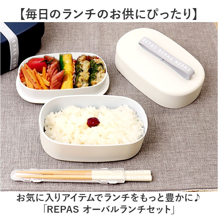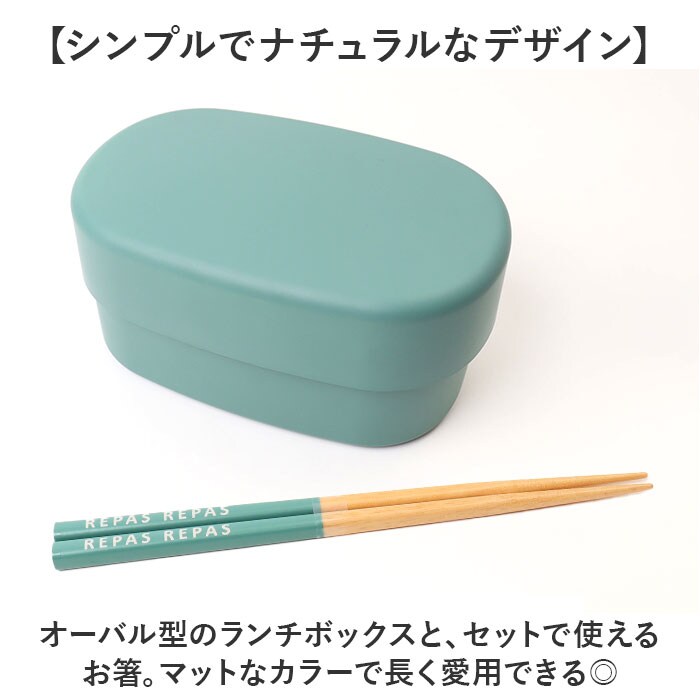 | 注意点 | [付属品]ゴムバンド x 1本[REPAS オーバルランチ]電子レンジ:可 (中蓋は使用不可) 食洗機:可 (中蓋は使用不可)[REPAS 箸セット18cm]食洗機:可お取り扱いの際は、商品やパッケージなどに記載されている品質表示、アテンションタグ、ご使用上の注意事項などを必ずご確認下さい。本来の目的以外にはご使用にならないで下さい。カメラやモニターの性質により、画像と実物の色の違いがある場合がございますのでご理解願います。 |