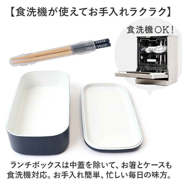| 重量 | [REPAS 長角一段ランチ]約247g(※パッケージ込みの商品の重量です。) [REPAS 箸セット18cm]約20g(※商品一式の重量です。) |
