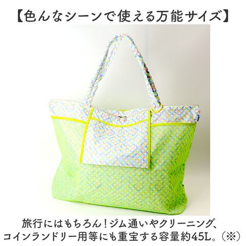 | サイズ | 【使用時】 [縦]約46cm/[上部横幅]約66cm/[底部横幅]約53cm [マチ]約15cm/[持ち手]約66cm 【収納時】 [縦]約20cm/[横]約26cm/[厚さ]約5cm ※サイズは当店計測の実寸サイズです。実際の商品ならびにメーカー表記サイズとは多少の誤差が生じる場合がございます。あらかじめご了承ください。 |