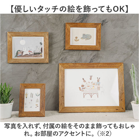 | 商品説明 | 【どんなインテリアにも素敵にマッチ】お気に入りの写真が映える♪「Photo frame photo2L REシリーズ」。【ナチュラル&シンプルなデザイン】空間にすっと溶け込む、天然木を使ったフレーム。写真を引き立てる自然な風合いが魅力。【2Lサイズの写真を飾れるフレーム】・2Lサイズ対応。写真をほこりなどから保護するアクリル板は軽量で割れにくいのもポイント。【壁掛け&スタンド使い縦横両用】お手持ちのビス等に引っ掛けて壁掛け。裏面の穴に、支えの棒を挿し込んで立て掛けも。(※1)どちらも縦横お好みで使い方を選べます。【優しいタッチの絵を飾ってもOK】写真を入れず、付属の絵をそのまま飾ってもおしゃれ。お部屋のアクセントに。(※2)中身の絵はランダムに変わります。 |