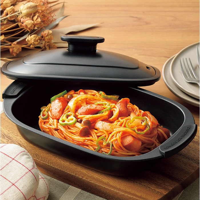 | 商品説明 | 【これ1つで6役こなす!】レンジで温めるだけであなたも料理上手に☆「レンジグリルパン」が登場。【食材を入れてチンするだけ◎】焼く・炒める・蒸す・煮る・茹でる・炊くができる、グリルパン。誰でもお料理上手に♪【そのまま食卓に出せるおしゃれさ】調理後はそのまま食卓へ出してOK!洗い物が減らせるから、ラクチン!【水分をキープしておいしく仕上がる】蓋をしてマイクロ波があたらないよう調理。肉や魚はパリッと、ふわふわ。野菜はシャキッと◎【こびりつきにくい仕様】フッ素コーティングを施し、汚れがサッと落ちる作り。お手入れが簡単だから毎日使える。【外せるシリコーンハンドル】両サイドのハンドルは取り外し可能。細部までキレイに洗えるからいつでも清潔。【専用レシピでもっとおいしく☆】お料理のレパートリーが増える、専用レシピつき。いつもの料理が劇的にラクになる。【スタイリッシュなオールブラック】食卓やキッチンに置いても様になる、オールブラックデザイン。ホームパーティーにも♪ |
