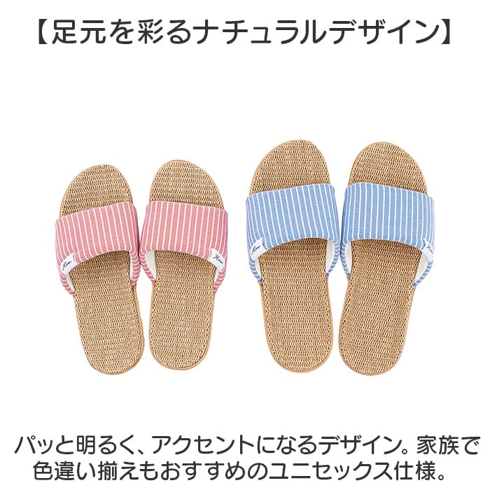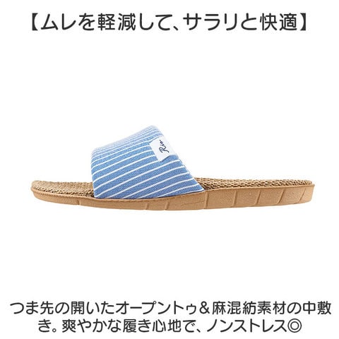 | 商品説明 | 【使い方自在で履き心地も抜群】色んなシーンで活躍。軽やかで優しく馴染んでくれる「RIO スリッパ」。【室内外問わず使える万能アイテム】水や汚れに強いEVA底材を使用。室内履きはもちろん、ベランダ用など外履きもOK!【ムレを軽減して、サラリと快適】つま先の開いたオープントゥ&麻混紡素材の中敷き。爽やかな履き心地で、ノンストレス◎【足にかかる負担が少なく疲れにくい】中敷きは弾力性もあり、足裏を優しく受け止める!長時間履いていても疲れにくいのがポイント。【手洗いできてお手入れラクラク】汚れが気になったら、自宅で手洗い可能。いつも清潔をキープできるのが嬉しい!【足元を彩るナチュラルデザイン】パッと明るく、アクセントになるデザイン。家族で色違い揃えもおすすめのユニセックス仕様。 |