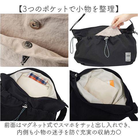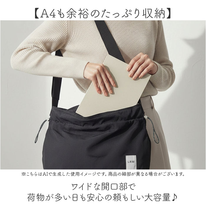 | 商品説明 | 【絞るだけでこなれる巾着バッグ】サイドを絞れば表情が変わる、「L.R.M ドロストサイド絞りショルダー」【安心の天ファスナー開口】開口部は開閉がスムーズな天ファスナー式。ファスナーを閉めれば、こぼれ落ちをガード。【A4も余裕のたっぷり収納】ワイドな開口部で荷物が多い日も安心の頼もしい大容量♪【2WAYシルエット】両サイドのドロストコードをキュッと引くだけでフォルムが一変するこなれ感デザイン!【3つのポケットで小物を整理】前面はマグネット式でスマホをサッと出し入れでき、内側も小物の迷子を防ぐ充実の収納力〇【ストラップ調節で自在なスタイル】長さを変えられるショルダーで斜めがけも肩かけも思いのまま。【身軽におでかけ】ふんわり軽い素材だから肩にかけたまま一日中快適に持ち歩ける◎ |
