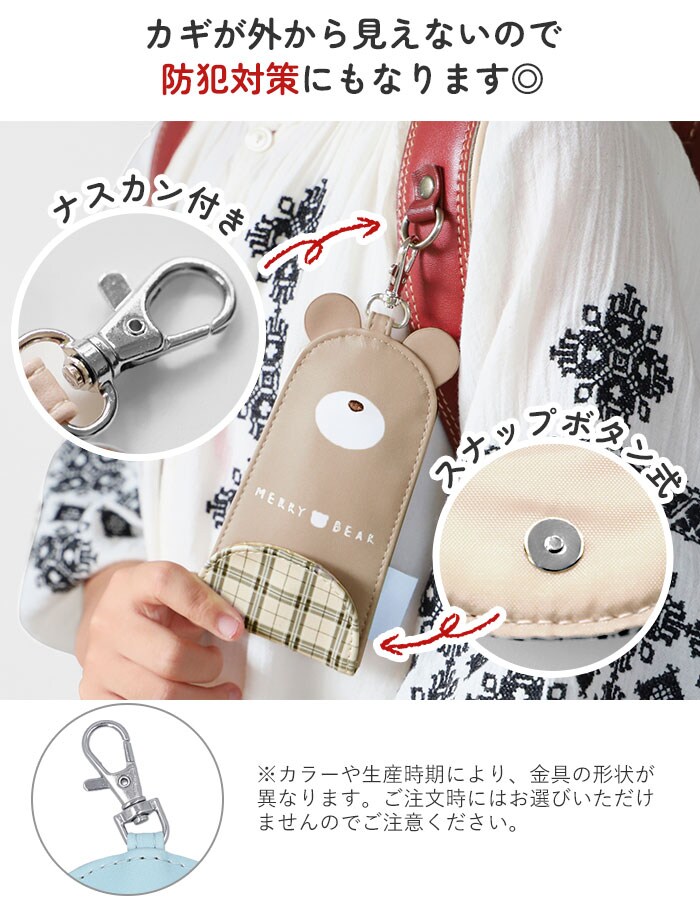 | 注意点 | 素材の性質により、強い刺激や水漏れ等で色落ちや色うつりする恐れがありますのでご注意下さい。照明や自然光により通常の使用でも若干の変色・退色が起こる場合があります。ベンジン、シンナー等の揮発性溶剤は使用しないで下さい。洗濯・乾燥機のご使用、クリーニングはおやめ下さい。雨水・汗等で濡れたり摩擦が生じると、着衣等に色移行または色落ちすることがありますのでご注意下さい。薬剤でのシミ落とし、アイロンがけはしないで下さい。物品は必要以上に沢山入れないように注意してください。鍵を取り付ける際は金具で指などを怪我しないようご注意下さい。断線の恐れがありますので、強い力でリールを引っ張らないで下さい。本製品の印刷手法の特性によりにじみや色抜けが発生することがありますがご了承下さい。カメラやモニターの性質により、画像と実物の色の違いがある場合がございますのでご理解願います。 |