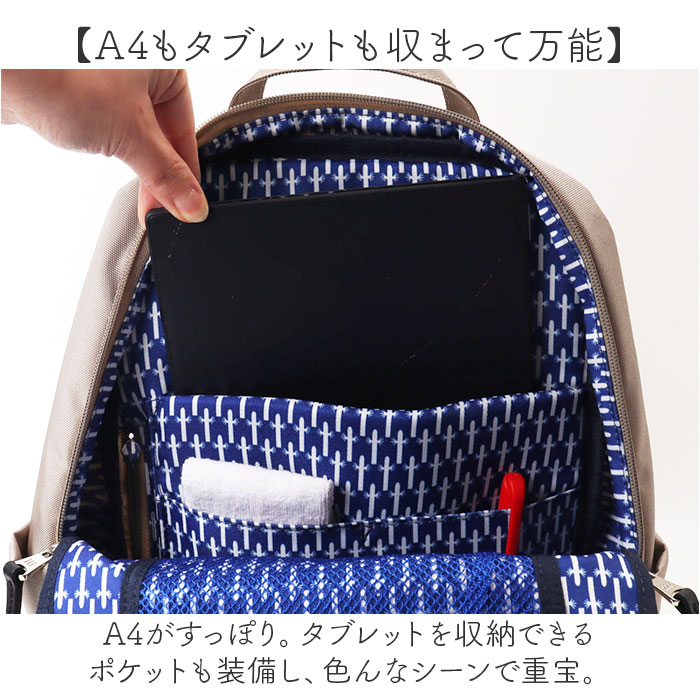 商品説明【装いを邪魔しないシンプルさが魅力】トレンドに左右されず、デイリー使いにぴったり♪「MOOMIN デイパック」。【無駄のないスマートシルエット】荷物がすっきりまとまる、程よい大きさのデイパック。カジュアルもフォーマルにもマッチ。【ガバっと開くダブルファスナー】左右どちらからも開閉できる、ダブルファスナー式。大きく開いて、荷物の出し入れがスムーズ◎【A4もタブレットも収まって万能】A4がすっぽり。タブレットを収納できるポケットも装備し、色んなシーンで重宝。【嬉しいメイン直結ファスナー付き】背面ファスナーを開くと、収納ルームにクイックアクセス。移動中も荷物の取り出しが簡単。【サクッと取り出せて迷子知らず】他にも大小多様なポケットと、キーフックを配置◎バッグの中で、小物を探す手間が不要。【背負い心地軽やかでストレスフリー】体に負担がかかりにくい軽量設計。ショルダーと背面には、クッション性をプラス。【遊び心溢れるこだわりをプラス】開けるのが楽しみになる、視認性を高めたニョロニョロ柄の裏地!革引手やボタンにもこっそり♪【不意の雨程度なら大丈夫】表面に汚れや水滴を弾きやすい撥水性を。お手入れも拭き取るだけ。(※1)完全防水ではありません。濡れたらすぐに拭き取ってください。【ポイント使いできる刺繍ポーチ】小銭やアクセサリー等を収納できるミニポーチ。カラーに合わせたキャラクターシルエット刺繍。(※2)ポーチはボールチェーンで取り外し可能です。【お気に入りを相棒に、お出かけ♪】大人が持ちやすいデザイン&カラーリング。ムーミンの仲間たちのシルエット入り織りネーム付。【ポケット仕様】内側:クッションポケット×1、ファスナー式メッシュポケット×1(内側にキーフック付き)、オープンポケット×2前面:ファスナーポケット×1サイド:オープンポケット×2背面:シークレットポケット×1