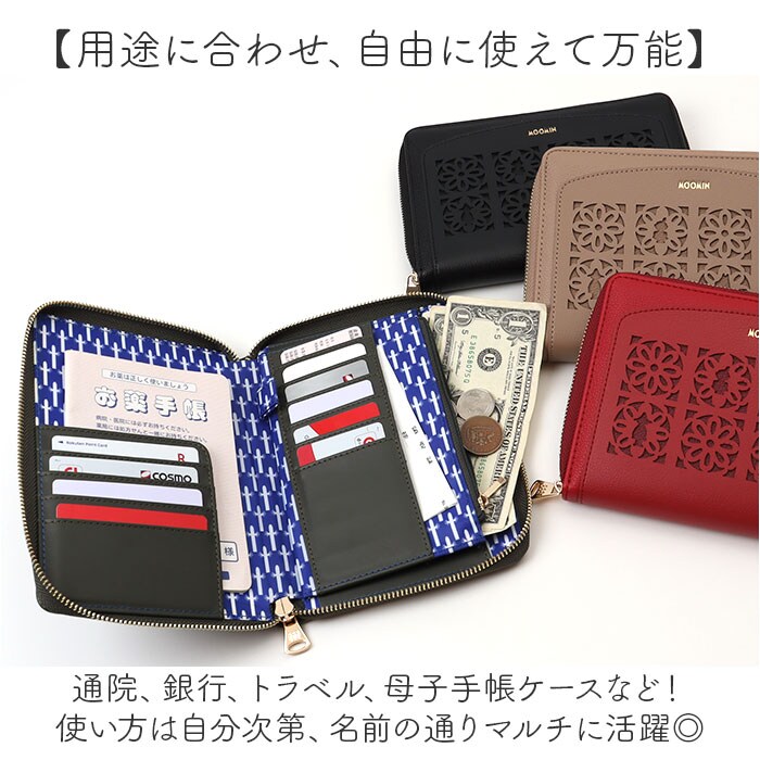 | 商品説明 | 【大切なアイテムをひとまとめ◎】すっきりまとめて忘れ物防止!色んなシーンで使える「MOOMIN マルチケース」。【ムーミンの優しい世界観をデザイン】ムーミン好き必見!キャラクターたちのフォルムをレーザーカットした、高級感のある仕上がり。【ガバッと開いて出し入れスムーズ】開口部はラウンド型に大きくオープン。中身がひと目で確認できて取り出しもラクラク。【かさばらずスマートに持ち運び】収納力がありつつ厚みを抑えたつくり。ファスナーをぐるっと閉めて、スリムフォルムをキープ。【上手に仕分けて取り出しラクラク】内側には14個のポケットとペンホルダーを装備。自分好みにオーガナイズできて使い勝手抜群。【用途に合わせ、自由に使えて万能】通院、銀行、トラベル、母子手帳ケースなど!使い方は自分次第、名前の通りマルチに活躍◎【サクッと仕舞える背面ポケット】背面のポケットは大きめに設計。処方箋や整理券などを入れておけて便利。【本革のようなお手入れの手間いらず】柔らかな合皮素材を使用しており、汚れなどは拭き取るだけ。手軽に使えるのが嬉しい!【遊び心溢れるこだわりをプラス】明るい色合いで、視認性を高めたニョロニョロ柄の裏地!ファスナーにもこっそりモチーフ入り☆【年代問わず使いやすいケース】上品な印象のカラー。前面にMOOMINロゴ、背面にはリトルミィのシルエットを箔押し♪【ムーミン好きな方への贈り物に】ムーミンロゴの入った、不織布袋付き。お祝いなどのプレゼントにもおすすめ。【ポケット仕様】内側:横型カードポケット×4、スリットポケット×1、ファスナーポケット×1、横マチ付きオープンポケット×1、縦型カードポケット×6、フリーポケット×1、ペンホルダー×1背面:フリーポケット×1 |