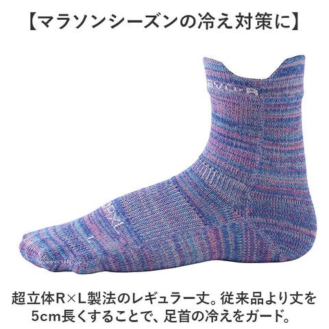 | 商品説明 | 【耐久性と素足感覚をしっかり両立】超立体製法がコンセプト!「RxL SOCKS RNS1005 EVO-RL ラウンド型」【特許製法技術のランニングソックス】ランニングソックス作りの経験の蓄積と、最新技術を融合したEVOシリーズをさらに改良!【ムレにくくオールシーズン快適】指股部分の上下にメッシュ編みを採用。通気性がアップし、気になるムレを軽減。【マラソンシーズンの冷え対策に】超立体R×L製法のレギュラー丈。従来品より丈を5cm長くすることで、足首の冷えをガード。【練習から本番まで大活躍の1足】素足感覚を保ちつつ、薄地の約2.35倍の耐久性!いつでも足元をサポートする相棒に。【ヒールカウンター&タンカバー健在】踵側の履き口の形状でアキレス腱部の当たりを、足首前側の形状でシュータンの当たりを防止。【つま先左右別立体設計】親指側、小指側の指の長さや太さに合わせて、超立体編み。(※)上面は親指側を長く編んでいます。【足首直角立体設計】靴下だけで、足首が自立。ズレにくい特殊製法!【土踏まず内側立体設計】土踏まず内側の形に合わせて、立体的にサポート。安定性もキープ。【インステップ立体設計】甲部分の生地の余りをなくし、フィット性を向上。【ストレスなく長く愛用できる】吸汗性・抗菌防臭仕様で、心地よく衛生的。全体を補強し、より長く履けるのが嬉しい!【走る楽しみが増えるカラーリング】同色系や補色系を混ぜたミックスカラー。3サイズ展開&日本製でギフトにもおすすめ! |