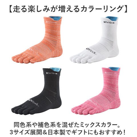 | 商品説明 | 【耐久性と素足感覚をしっかり両立】超立体製法がコンセプト!「RxL SOCKS RNS5008 EVO-FL 5本指」。【特許製法技術のランニングソックス】ランニングソックス作りの経験の蓄積と、最新技術を融合したEVOシリーズをさらに改良!【ムレにくくオールシーズン快適】指股部分の上下にメッシュ編みを採用。通気性がアップし、気になるムレを軽減。【マラソンシーズンの冷え対策に】超立体R×L製法のレギュラー丈。従来品より丈を5cm長くすることで、足首の冷えをガード。【練習から本番まで大活躍の1足】素足感覚を保ちつつ、薄地の約2.35倍の耐久性!いつでも足元をサポートする相棒に。【ヒールカウンター&タンカバー健在】踵側の履き口の形状でアキレス腱部の当たりを、足首前側の形状でシュータンの当たりを防止。【つま先左右別立体設計】親指側、小指側の指の長さや太さに合わせて超立体編みした、フィンガースペース製法。(※)側面は各指下側を立体的に編んでいます。【足首直角立体設計】靴下だけで、足首が自立。ズレにくい特殊製法!【土踏まず内側立体設計】土踏まず内側の形に合わせて、立体的にサポート。安定性もキープ。【インステップ立体設計】甲部分の生地の余りをなくし、フィット性を向上。【ストレスなく長く愛用できる】吸汗性・抗菌防臭仕様で、心地よく衛生的。全体を補強し、より長く履けるのが嬉しい!【走る楽しみが増えるカラーリング】同色系や補色系を混ぜたミックスカラー。3サイズ展開&日本製でギフトにもおすすめ! |
