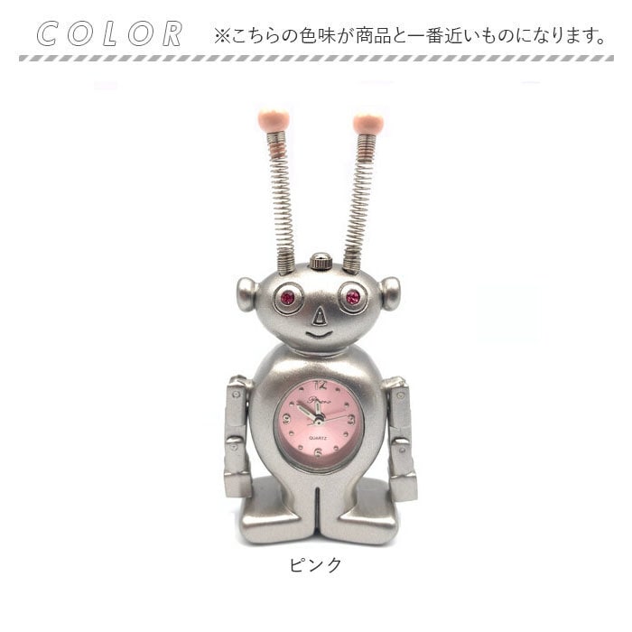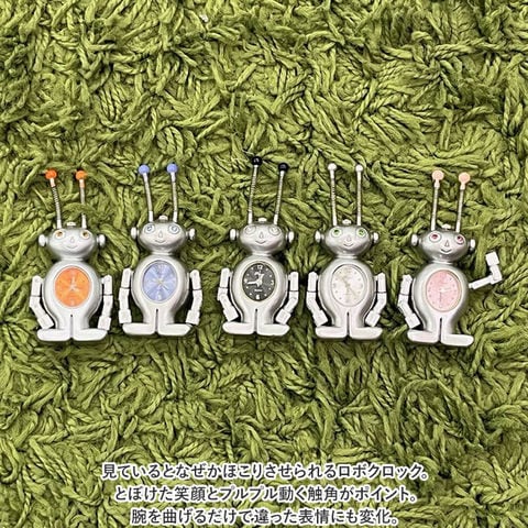 | 商品説明 | 見ているとなぜかほこりさせられるロボクロック。とぼけた笑顔とプルプル動く触角がポイント。腕を曲げるだけで違った表情にも変化。 |