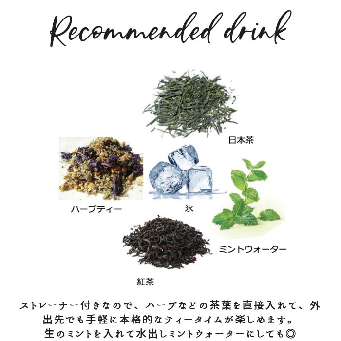 | 素材 | [内ビン、胴部]ステンレス鋼 [口金、コップ本体]ステンレス鋼 [ストレーナー]ステンレス鋼 [中栓、コップホルダー]PP [パッキン]シリコーンゴム |