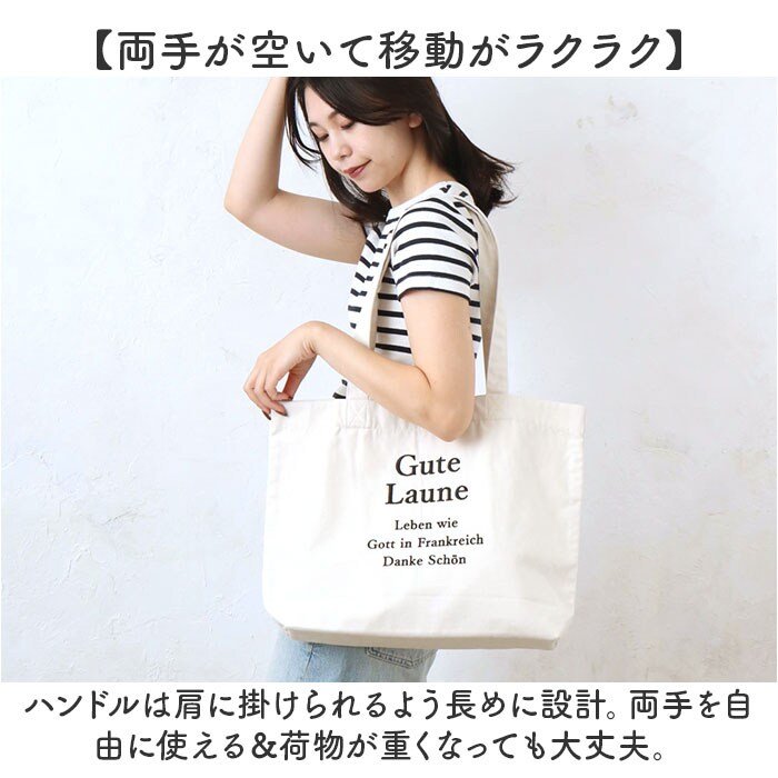 | 商品説明 | 【色んなシーンでヘビロテ間違いなし】お出かけや旅行、通勤通学用や、ママバッグとしてマルチに活躍☆「ロゴ刺繍ラージトート」。【サスティナブルで大容量◎】肌馴染みの良い、柔らかなリサイクルコットンで作られたトート。必要な物がしっかり入る!【両手が空いて移動がラクラク】ハンドルは肩に掛けられるよう長めに設計。両手を自由に使える&荷物が重くなっても大丈夫。【マグネット式でワンタッチ開閉】開口部は力いらずで簡単◎出し入れしやすく、閉じれば中身の飛び出しもガード。【A4対応でざっくりひとまとめ】A4が横向きに、程よいマチでマストアイテムがすっきり。安定感のある底板も内蔵。【サクッと取り出せて迷子知らず】内側と背面にポケットを1つずつ配置。バッグの中で、小物を探す手間が不要。【コーデのアクセント使いにぴったり】シンプルなつくりに、フロントのロゴ刺繍がポイント!おしゃれに持ち歩ける相棒☆【地球と人に優しいe.e.p】earth ecology projectの略。環境負荷を抑え、より豊かな生活を彩る♪【ポケット仕様】内側:オープンポケット×1背面:ファスナーポケット×1 |