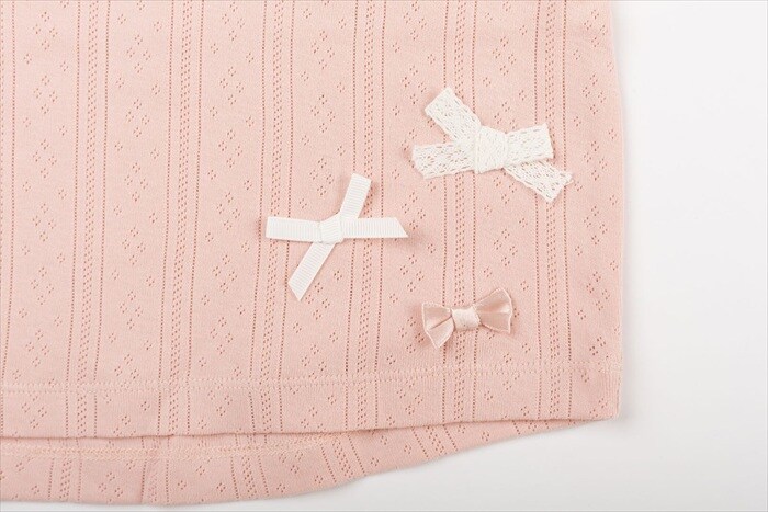 | 商品説明 | 針抜きで模様を表現したパターンメッシュ素材がかわいい綿100%なので、吸汗性が良く汗ばむ季節にも快適な着心地何にでも合わせやすい無地のベーシックデザインリボンの飾りが可愛いアクセントに♪ |