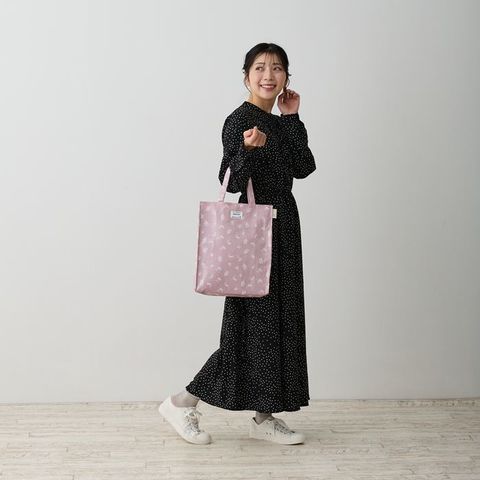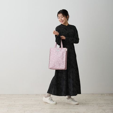 | 素材 | 表地:綿、ノンフタル酸PVCラミネート加工/裏地:ポリエステル 持ち手:綿、ノンフタル酸PVCラミネート加工/底板:ベルポーレン/留め具:マグネットホック |
