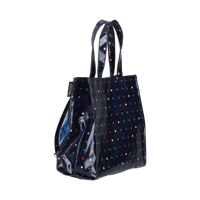| 素材 | 表地:綿、ノンフタル酸PVCラミネート加工/裏地:ポリエステル 持ち手:綿、ノンフタル酸PVCラミネート加工/留め具:マグネットホック |