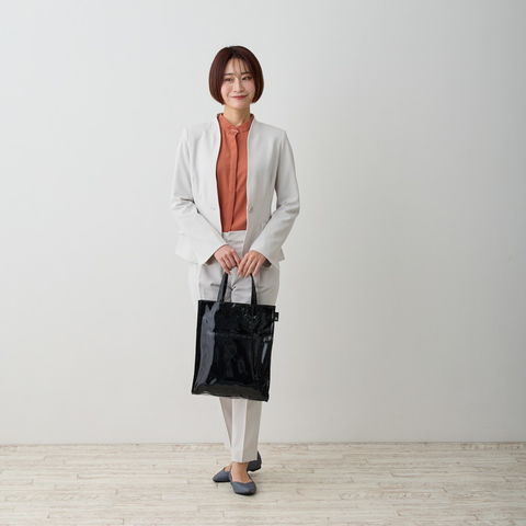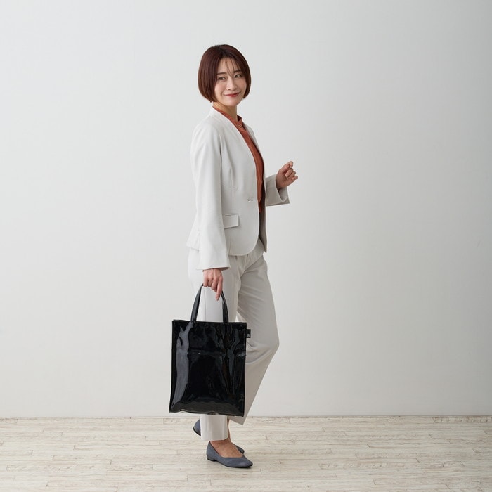 | 素材 | 表地:合成皮革/裏地:ポリエステル/持ち手:合成皮革 底板:ベルポーレン/留め具:マグネットホック |