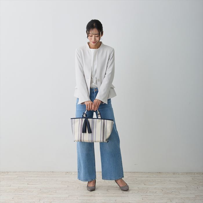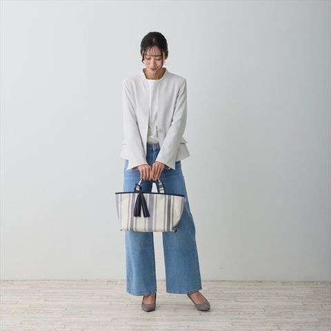 | 商品説明 | 取り外し可能な大きめなタッセルがアクセント。手持ち、腕掛けにちょうどよいサイズ感。底マチが広く、見た目以上にたっぷり収納できます。口元はマグネットホック開閉。開き口が広いので、モノの出し入れがしやすく中身もパッと確認できます。内側に3つのポケット。大きめなファスナー付きポケットには、長財布などの貴重品を安心して入れておけます。サイドにあるファスナー付きルーポケット。鍵やパスケースなど、出し入れ頻度の高いアイテムの収納に便利です。 |
