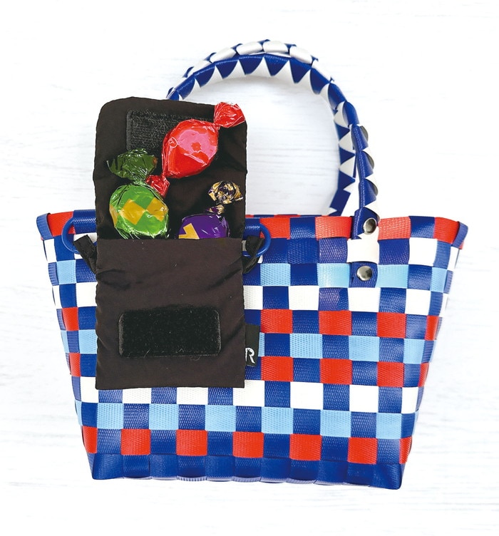 | 商品説明 | カラフル&ハリのある荷造りテープが素材。ベビールーサイズのトートに編み上げました。ちょっとそこまでのお出かけ”こでかけ”のお供に!円形カラビナで着脱可能なルーポケットを付属しました。付ける場所をアレンジしたり、単品でミニポーチとしても使用可能。フラップ付きで、イヤホンやアクセサリーなど細々とした物の収納に便利です。軽くて自立するトート。おでかけでの使用はもちろん、小物を収納してお部屋のインテリアにも! |