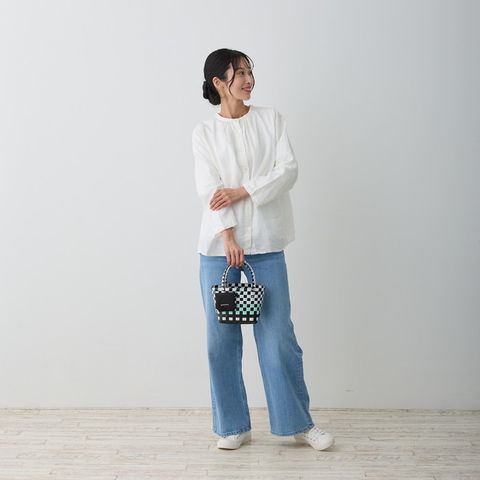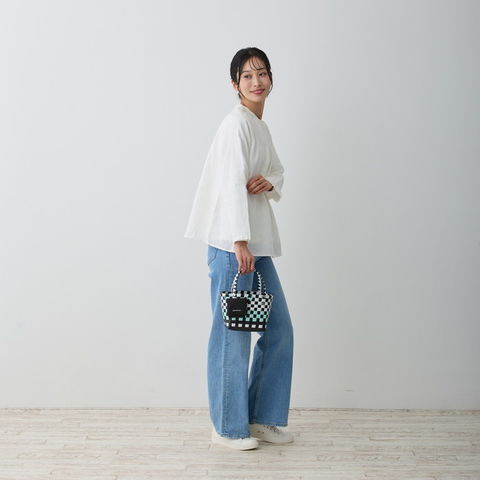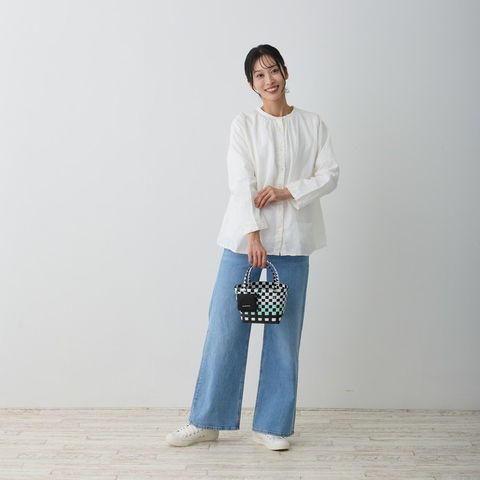 | サイズ | ヨコ(上部)21(下部)16×タテ15×マチ9cm/持ち手:28cm |