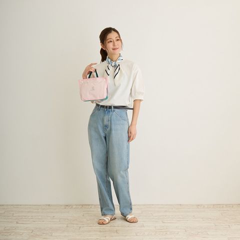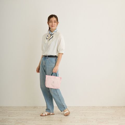 | 素材 | 表地:ポリエステル/持ち手:ポリエステル/留め具:プラスチックホック |