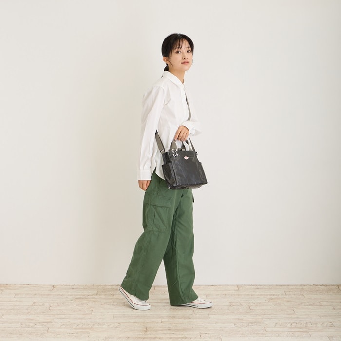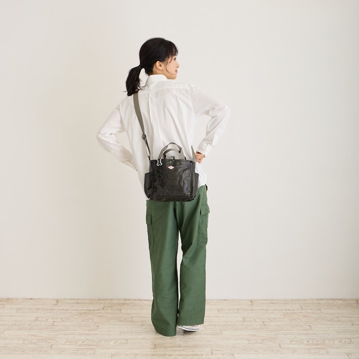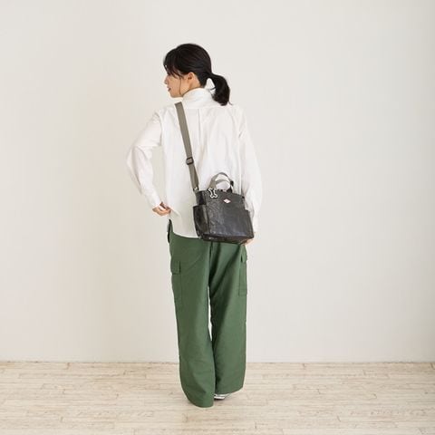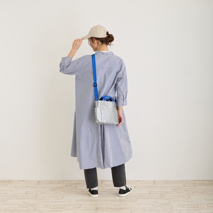 | サイズ | ヨコ(上部)25(下部)27×タテ21.5×マチ8cm 持ち手:25cm/ショルダー最長:120cm |