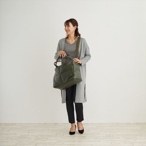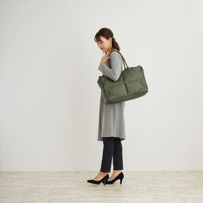 | 商品説明 | スタイリッシュなきれいめキルティング。羽毛のインナーで仕上げた軽~いトート。お気に入りのワードローブにあわせてオシャレを楽しむ!もっと出かけしたくなるあなたに似合うトートです。【使いやすい触り心地】大人っぽさのある光沢感&高級感のあるつくり。ショルダー付きのたっぷり大容量!旅行用トートしても大活躍です。【両サイドにルーポケット付き】両サイドのルーポケットは中で繋がった一つのポケット。左右どちら側からもスマートに中身を出し入れできる優れもの。また、寒い日には、両手を入れれば、ほんのり暖かな「ハンドウォーマー」ポケットに!屋外でのスポーツ観戦やイベントなどのお供にも最適です。【大小3つの内ポケット】2サイズのフラットポケットにはスマホなどを。頻繁に使う小物類もすっきり収納、迷子になりがちな小物も迷わず取り出せます。大きめポケットは、ファスナー付きで貴重品の収納にも安心です。【たっぷりの収納力】広々としたつくり。A4ファイルもしっかり収納。天マチ付きのファスナー開閉で、大きく開き中身が見やすく出し入れスムーズ。毎日のお出かけに必要なアイテムはもちろん、寒暖差の大きい季節には、ストールや手袋などのかさばるアイテムも余裕で収納ができます。たっぷり収納できるからこそ、バッグ本体の軽さもうれしいポイントです。ビジネスバッグとしても重宝します。【少ない荷物でも型崩れしにくい!】底部にはウレタンボンディングを施しました。荷物が少ない時にも型崩れしにくくなっています。【トートバッグ&ショルダーバッグの2way仕様】取り外しができるショルダー付きで、両手をふさぐことなく使用できます。長さ調整ができるので、斜め掛けも可能です。手持ちでも肩かけでも、シーンに合わせて選べます。 |