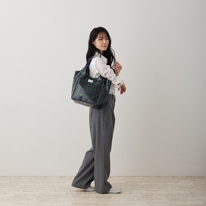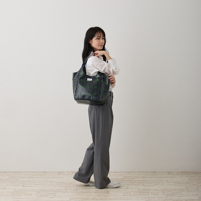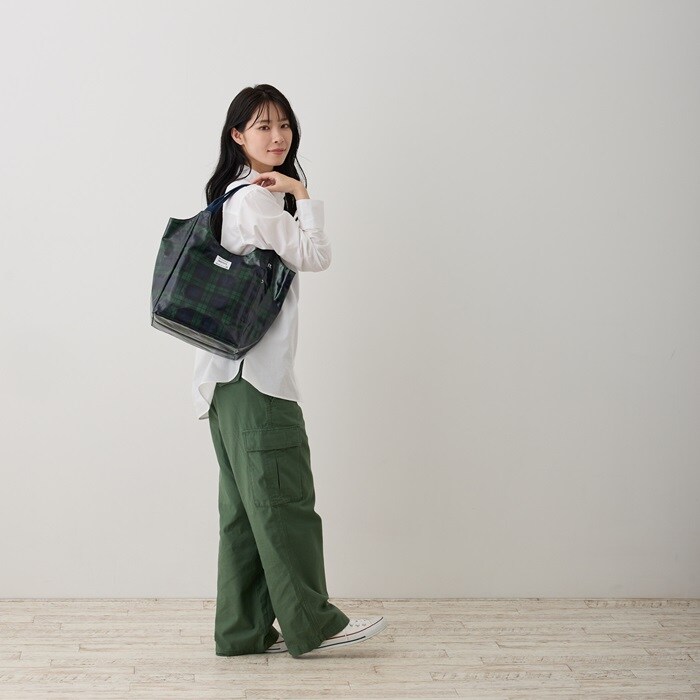 | 商品説明 | 肩掛けしやすいつくり「ラウンド」。マチもたっぷり、たくさん荷物が入って収納力抜群!ランチボックス、ボトル、大き目ポーチなどらくらく入ります。艶感のあるラミネート加工。燃やしても有害のないラミネート素材を使用しています。汚れや水滴なども拭き取りやすく機能的、軽量で、長時間の持ち歩きにも最適です!開き口が広くモノの出し入れがしやすく、中身もパッと確認できます。インナーポケットは小物入れとして、サイドにあるファスナー付きルーポケットには、鍵やスマホ、マスクなどを入れておけるので便利です。 |