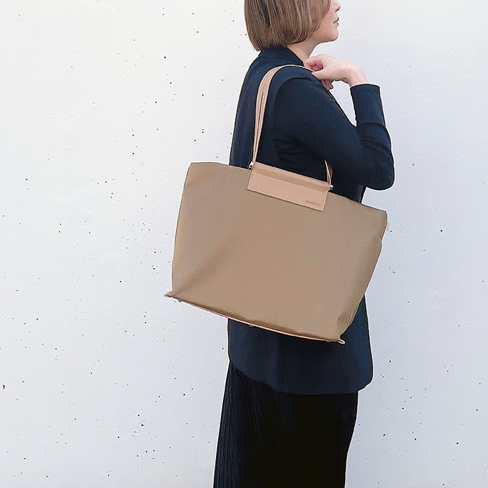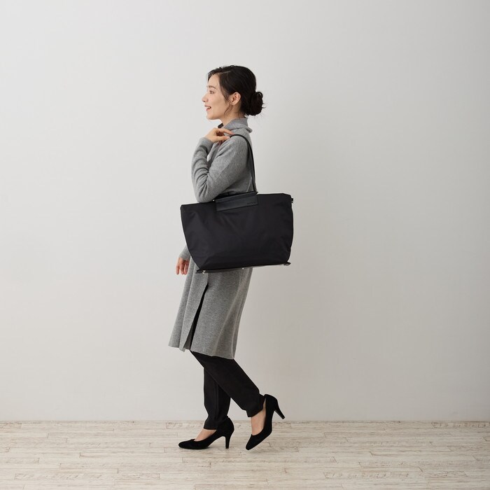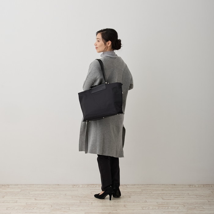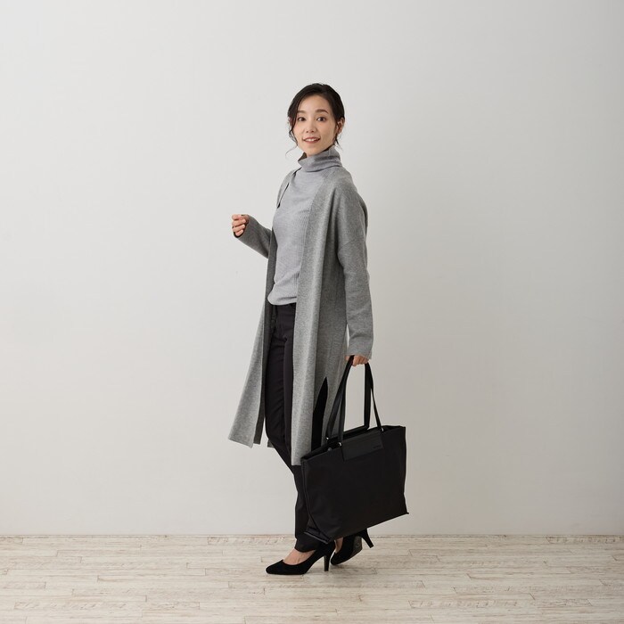 | 商品説明 | デイリー使いもできるお仕事トート。軽さ、機能性、どんなスタイルでも合わせやすいカラーリング。カジュアルにもきれいめにも…。高級感のある厚手でしなやかな光沢感のあるポリエステル素材。汚れや水に強い「撥水加工」を施しました。雨の日も晴れの日もデイリーに使える頼もしいトートです。上品な仕上がりで、丈夫で汚れにくい。荷物を入れても型崩れがなく綺麗なシルエットが保たれます。底鋲も付いているので、床においても汚れるのを防いでくれます。ポケット充実!6つの収納箇所に荷物の仕分けがしっかりできます。倒れず収納できるボトルホルダーや立てて収納したい小物の収納に便利なサイドポケット付き。バッグの中で散らかってしまいがちなアイテムを整理整頓。ファスナー付きルーポケットには、スマホなどの貴重品を入れおけて便利です。軽くてたっぷり容量。A4サイズのファイルが収納できるサイズ。口元ファスナーで、大切な書類を入れても安心です。13インチのPCも入り、ビジネスバッグとして重宝します。ハンドル長めで肩に掛けやすい。腕掛けでも肩かけでも、シーンに合わせて選べます。 |