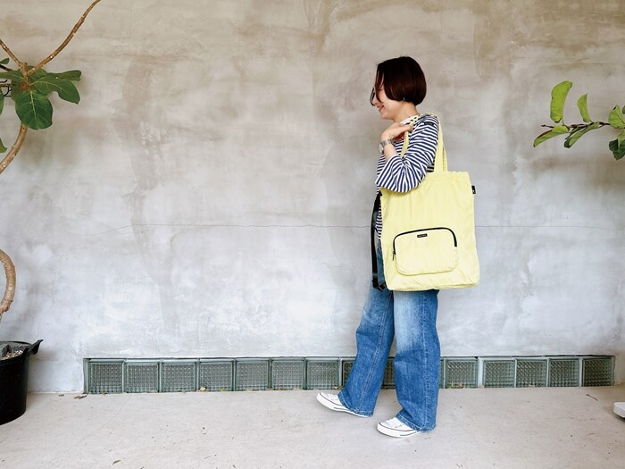 | 素材 | 表地:ナイロン(はっ水加工)/持ち手:ナイロン(はっ水加工) |
