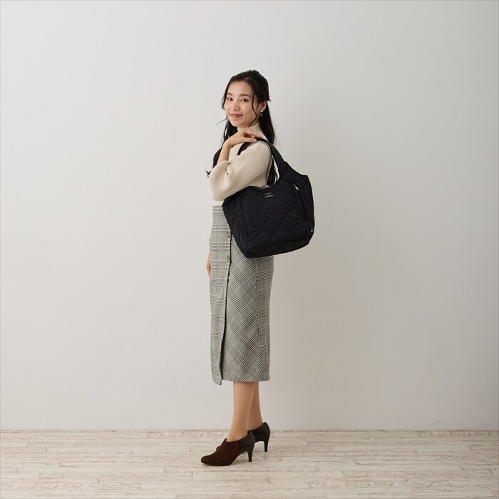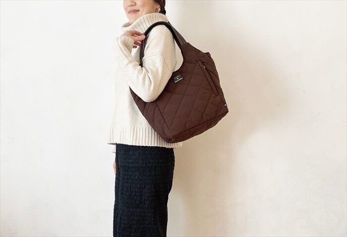 | 商品説明 | 汚れや水に強い「撥水加工」。雨の日も晴れの日もデイリーに使える頼もしいトートです。軽くて丈夫なナイロン生地に、キルティング加工を施しました。中綿入りで布地にプクッと立体感が出て、おしゃれでかわいい仕上り。肩掛けしやすいつくり。体に寄り添うやわらかさがありながら、カッチリした雰囲気。バッグの中で散らかってしまいがちなアイテムを整理整頓。たっぷり荷物が入り、荷物の仕分けがしっかりできます。4つのお部屋に仕切られた内側。荷物を立てて収納することもできるので、モノの出し入れがしやすく、中身もパッと確認できます。仕切りは、片側に寄せることもでき、全体のスペースを広く使うことができます。底マチが広く、ランチボックスなども入ります。中身に応じて使い分けが可能です。内ポケットが充実!小物の仕分けに便利な4箇所のフラットポケット。仕切り部分はファスナーポケットも兼ねているので貴重品の収納に最適。両サイドのホルダーにはボトルや折畳み傘など細長いものがフィットします。サイドにあるファスナー付きルーポケットには、すぐ取り出したいものを入れておくのに便利です。スマホやパスケース、マスクなどの小物の収納に。シンプルだけど、機能的。お出かけを心地よく。まいにち使うほどに、“グッドデザイン”を実感できます。 |