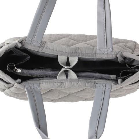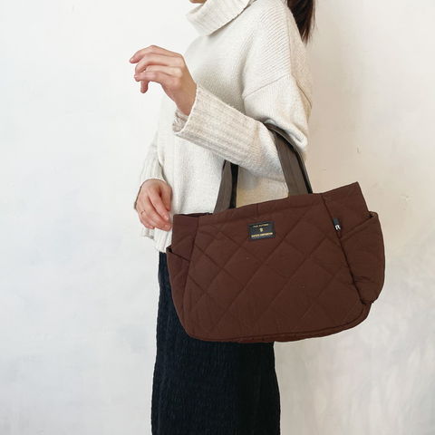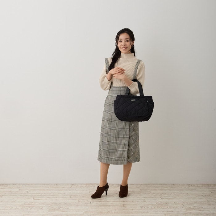 | 商品説明 | 汚れや水に強い「撥水加工」。雨の日も晴れの日もデイリーに使える頼もしいトートです。軽くて丈夫なナイロン生地に、キルティング加工を施しました。中綿入りで布地にプクッと立体感が出て、おしゃれでかわいい仕上り。バッグの中で散らかってしまいがちなアイテムを整理整頓。たっぷり荷物が入り、荷物の仕分けがしっかりできます。4つのお部屋に仕切られた内側。荷物を立てて収納することもできるので、モノの出し入れがしやすく、中身もパッと確認できます。仕切りは、片側に寄せることもでき、全体のスペースを広く使うことができます。底マチが広く、ランチボックスなども入ります。中身に応じて使い分けが可能です。両サイドのポケット入り口が斜めにカットされ、アクセントになっています。すぐ取り出したいものを入れておくのに便利です。スマホやパスケース、ハンドクリーム、消臭スプレーなどの小物の収納に。シンプルだけど、機能的。お出かけを心地よく。まいにち使うほどに、“グッドデザイン”を実感できます。 |