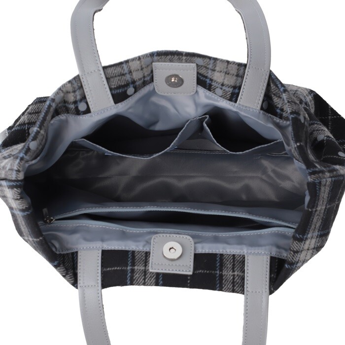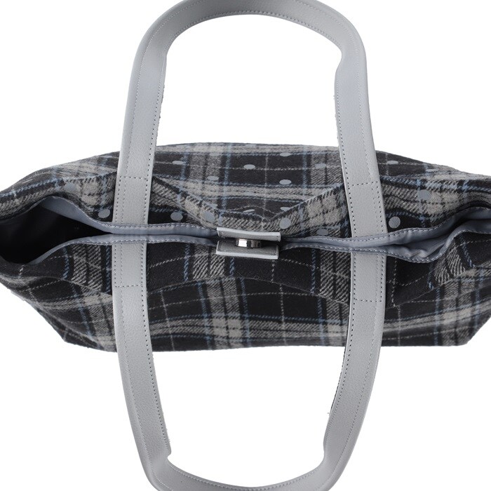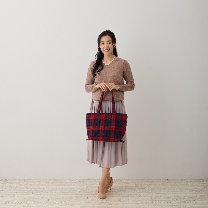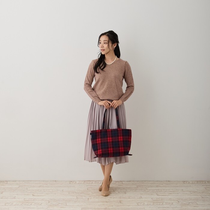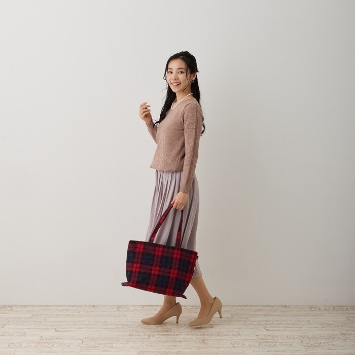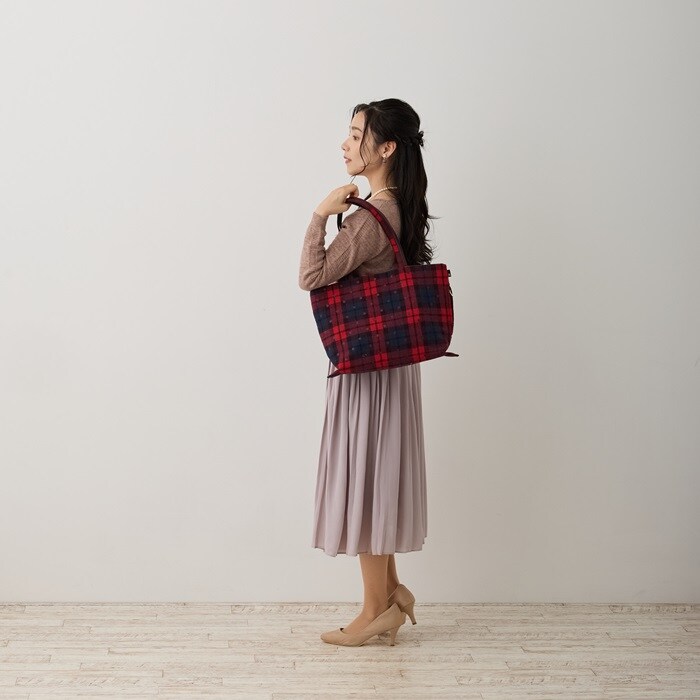 | 商品説明 | 秋冬に持ちたくなるチェック柄。あたたかみのあるフェルト生地に質感の違うドットのプリントを施しました。背面はチェック柄のみなので、その日の気分でオモテウラを使い分けできます。丸みのあるフォルムがかわいい。自立するしっかりしたつくり。かわいいものの中にも、大人っぽい仕上がりを意識しています。ハンドル長めで肩に掛けやすい。モノの出し入れがスムーズなバッグの深みで、たっぷり大容量。A4ファイルもゆったりと収納できます。荷物の仕分けがしやすい充実のポケット。バッグの中身をきれいに整理整頓。中身もパッと確認できます。サイドのファスナー付きルーポケットには、スマホや鍵などの収納に。 |