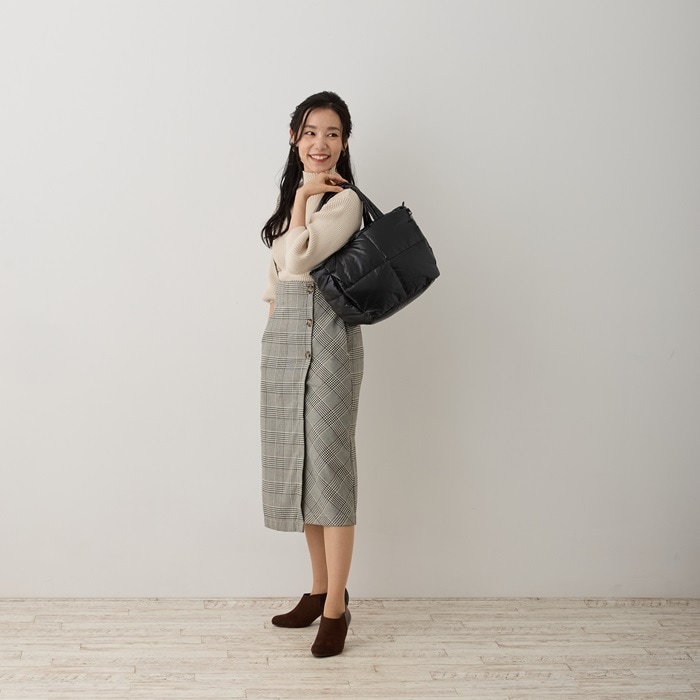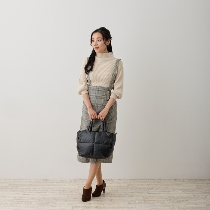 | 商品説明 | アクティブなシーンに より軽やかさを。【CARO(カロ)】イタリア語:カーロ 親愛なる 大切な日本語:火炉(かろ) 暖をとるもの ~羽毛のイメージ~というそれぞれの意味と、“軽い”トートの語感をあわせ名付けました。スタイリッシュなきれいめキルティング。羽毛のインナーで仕上げた軽~いトート。お気に入りのワードローブにあわせてオシャレを楽しむ!もっと出かけしたくなるあなたに似合うトートです。使いやすい触り心地。大人っぽさのある光沢感&高級感のあるつくりです。【両サイドにルーポケット付き】両サイドのルーポケットは中で繋がった一つのポケット。左右どちら側からもスマートに中身を出し入れできる優れもの。また、寒い日には、両手を入れれば、ほんのり暖かな「ハンドウォーマー」ポケットに!屋外でのスポーツ観戦やイベントなどのお供にも最適です。【大小3つの内ポケット】2サイズのフラットポケットにはスマホなどを。頻繁に使う小物類もすっきり収納、迷子になりがちな小物も迷わず取り出せます。大きめポケットは、ファスナー付きで貴重品の収納にも安心です。【たっぷりの収納力】広々としたつくり。B5ファイルもしっかり収納。天マチ付きのファスナー開閉で、大きく開き中身が見やすく出し入れスムーズ。毎日のお出かけに必要なアイテムはもちろん、寒暖差の大きい季節には、ストールや手袋などのかさばるアイテムも余裕で収納ができます。たっぷり収納できるからこそ、バッグ本体の軽さもうれしいポイントです。ビジネスバッグとしても重宝します。【少ない荷物でも型崩れしにくい!】底部にはウレタンボンディングを施しました。荷物が少ない時にも型崩れしにくくなっています。 |