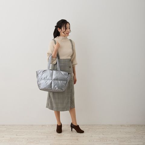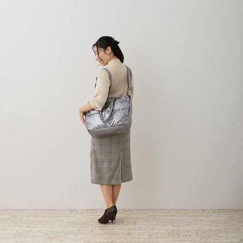 | 素材 | 表地: ポリエステル/裏地:ポリエステル/持ち手:ポリエステル/中綿:フェザー、ダウン (金具カラー:01 シルバー 02:ブラック 03:ゴールド 04シルバー) |