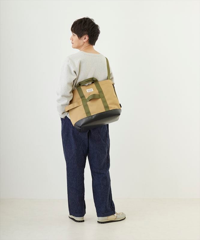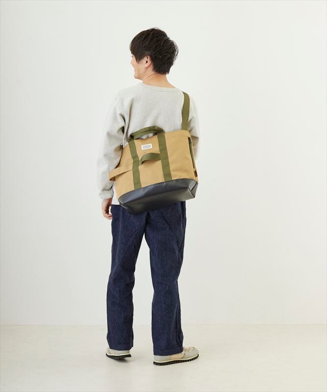 | 商品説明 | 仕事や子育て…忙しい日常に寄り添う、夫婦でシェアできるトート。どちらが持っても違和感のないシンプルさと実用性の高いデザインです。ショルダーにもトートにもなる2Way仕様。ハリ感のある本体に汚れや水滴に強いターポリンを底面にあわせました。撥水加工が施され、雨の日も晴れの日もデイリーに使えて頼もしい!しなやかさと強さを両立。荷物を入れても型崩れがなく綺麗なシルエットが保たれ、しっかり自立もします。ポイントになる前後&サイドにあるハンドル。運ぶためにつくられたトート。そんな歴史を感じるループ状の持ち手になっています。何かを引っ掛けて使ったり、ロッカーや電車の荷棚から荷物を取り出すときに持ち手を引っ張って使ったりすることもできます。A4サイズの書類はもちろん、ランチボックス、ボトル、折りたたみ傘、コスメポーチなどもらくらく収納。たっぷり大容量だから、ビジネスバッグやお出かけバッグとして重宝します。モノの出し入れがしやすく、中身もパッと確認できます。便利なダブルルーポケット。出し入れスムーズな背面ルーポケット。すぐに出したいスマホやマスクなどを入れておくと便利です。側面ルーポケットには、鍵、パスケースなど貴重品小物の収納に。ファスナー付きで安心です。身長に合わせて長さ調節ができるロングショルダー付き。手持ち、肩掛け、斜め掛けと使うシーンにあわせて選べます。どんなファッションにも合わせやすく、季節を問わず大活躍。両手がフリーになるバッグは、日常の必須アイテムです。 |
