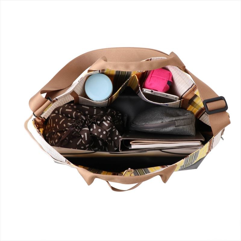 | サイズ | ヨコ(上部)46(下部)33×タテ34×マチ17.5cm 持ち手:25cm/ショルダー:最長120cm |