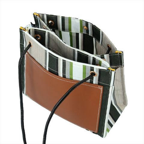 | 商品説明 | リゾート地にあるカフェテラスのパラソルのようなストライプと合皮との組み合わせが印象的なサコッシュ。コンパクトにできたり、容量を増やしたり荷物の量に合わせて変えられる仕様が便利。ポケットは外側3箇所(うちファスナー付1箇所)、内側1箇所。底板付。 |