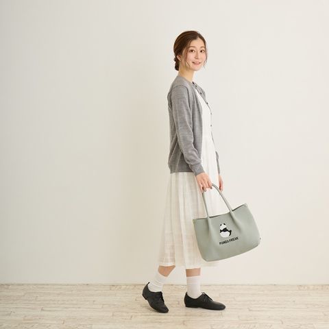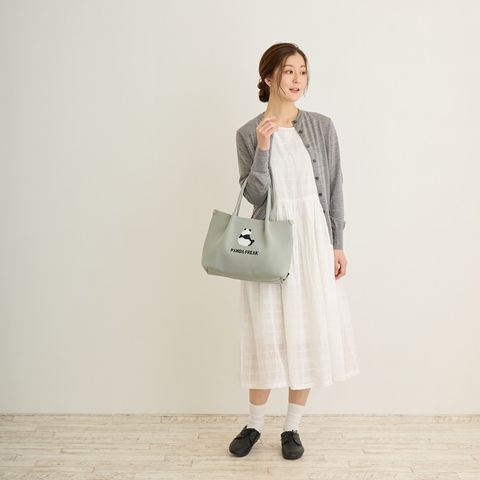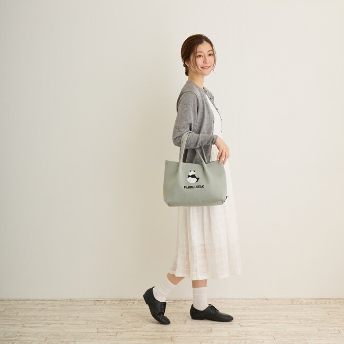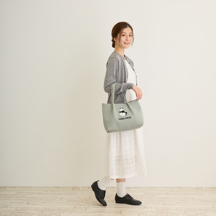 | 商品説明 | 素材をフル活用したルートート「ルフル」。サラリとした手触りは暑い季節にもベタつかず、快適。ニットなのにハリがあり、自立するのも魅力です!トートバッグのパターンにあわせて、パーツごとに生地を編み立てていきます。製造時の端材が出ず、生地端の処理も不要。無駄の少ない製法でつくられました。必要な分だけパーツを用意し、素材をフル活用しました。シンプルなデザインと使いやすさ。やわらかい色合いが癒されます。見た目以上のたっぷり容量。お財布、ボトル、A5ノート、ポーチなどらくらく収納!スマホがぴったり収納の内ポケット付き。大きく開く口元で、モノの出し入れがしやすく、中身もパッと確認できます。サイドのルーポケットには、取り出す頻度の高い小物を入れておくのに便利です。ハンドル長めで肩に掛けやすい。腕掛けでも肩かけでも、シーンに合わせて選べます。体に寄り添うやわらかさがありながら、自立するシルエット。荷物が少ない時にも型崩れしにくくなっています。いつでも清潔に。洗濯可能で、衛生的に安心してご利用いただけます。季節を問わず大活躍です。おしゃれのワンポイントに! パンダトート |