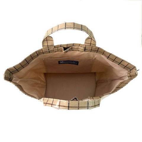 | 商品説明 | 日常使いにちょうどよいサイズ「デリ」。底マチが広く、お弁当箱など幅のある荷物も収納可能。ボトル、A5ノート、大き目ポーチ、折畳み傘など必要なものがひと通り収まります。艶のあるラミネート加工生地。燃やしても有害物質の発生が少ないラミネート素材を使用しています。汚れや水滴が拭き取りやすいのもうれしいポイント。舟形で開口部が広いため、出し入れスムーズ!口元は、ドットボタンで留められます。内側にはオープンタイプとファスナー付き、2つのポケット。サイドにはファスナー付きのルーポケット。バッグの中で迷子になりがちな小物の収納に便利です。 |