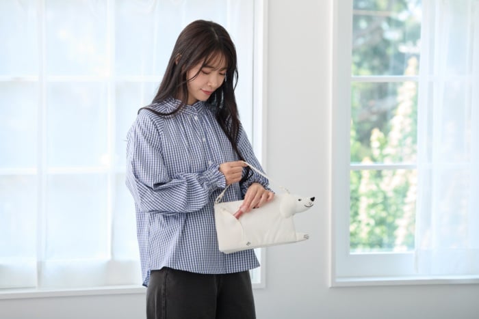 | 商品説明 | 自立するオスワリポーズのいぬ型トート。スマホ、ミニ財布、ハンカチなどが入る大きさ。身軽にちょっとそこまでの出かけや、メインバッグとの2個持ちに。取り外し可能な2本のストラップ付き。長いストラップは、長さ調節も可能。肩掛け、斜め掛けに。短いストラップで手持ちに。ストラップの金具を片側だけに通せば、クラッチバッグ風に持つこともできちゃいます。フラットな形状なので、バッグの中に入れておいてもかさばりにくい。ストラップを外せば、バッグインバッグやポーチ代わりにも使えます。口元はファスナー開閉。ファスナーの引手がしっぽになっているのもチャームポイント♪内側が2部屋に分かれているので、持ち物の仕分けに便利です。背面の後ろ足はルーポケット!リップクリームがちょうど収まるミニポケットです。ピーチスキンの手触りと、賢そうなわんこの表情がたまらない、癒し系トート。いつでもあなたに寄り添う、楽しいお出かけのパートナーです。 |