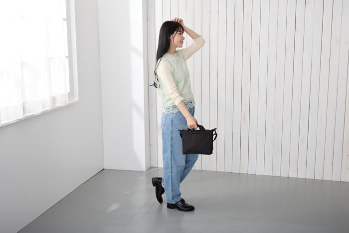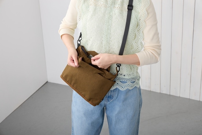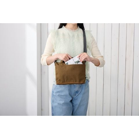 | 商品説明 | ちょっとそこまでの、身軽なお出かけに便利。スマホやウォレット、A5ノートなどが収納可能。口元はファスナー開閉で、安心なつくりです。スリムな底マチながら、安定して自立するよう工夫された底面。自立するからモノの出し入れがスムーズ!取り外し&長さ調節可能なショルダーベルト付き。ショルダーベルトを外せば、ミニトートバッグとして、またバッグインバッグとしても使用可能。正面、背面それぞれに2つに仕切られたルーポケット付き。出し入れ頻度の高いアイテムの収納に便利です。お出かけを心地よく。毎日使うほどに、“グッドデザイン”を実感できます。 |