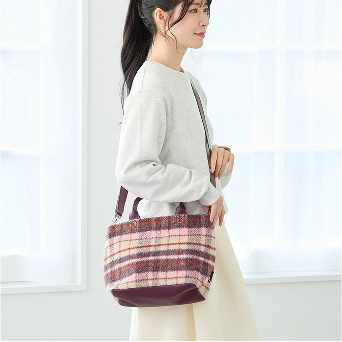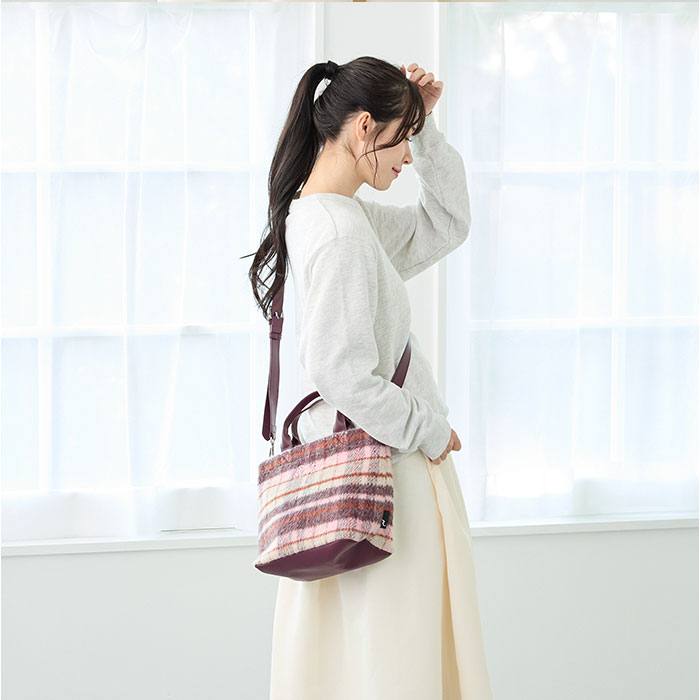 | サイズ | ヨコ(上部)31(下部)25×タテ23×マチ14cm/持ち手:28cm/ショルダー最長:130cm |