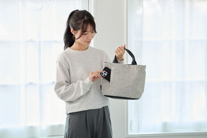 | 素材 | 表地:ポリエステル、毛/裏地:ポリエステル/持ち手:合成皮革/留め具:マグネットホック |