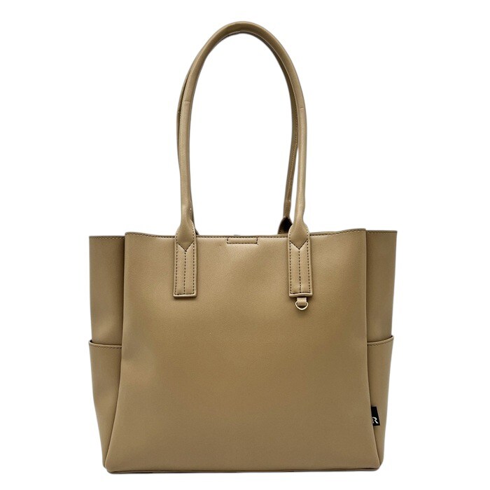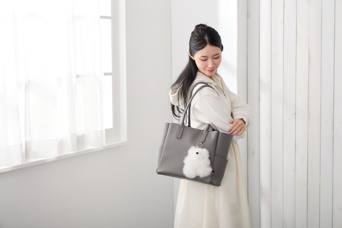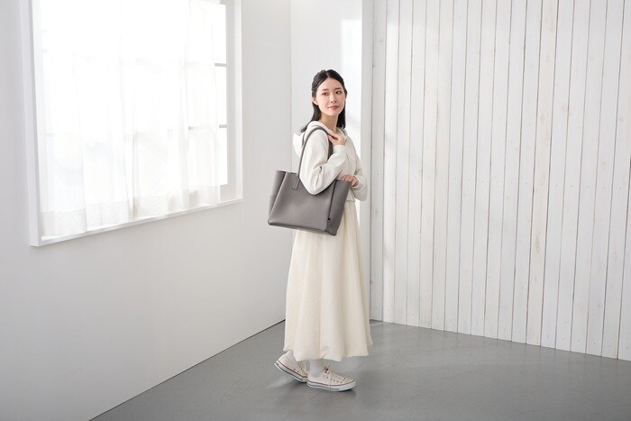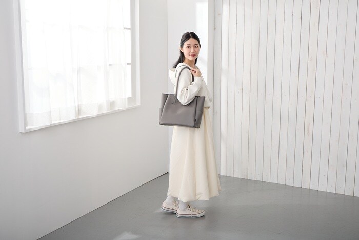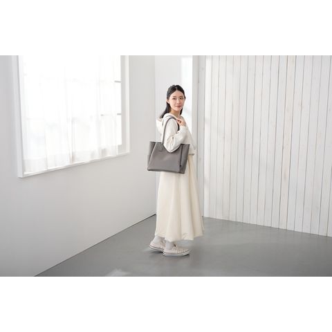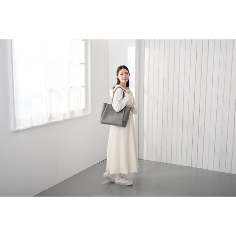 | 商品説明 | 毎日の暮らしにちょうどいい「きちんと感」と「頼れる収納力」。しなやかなのにしっかりとした厚みのある合皮素材は、持つだけで上品な印象に。汚れや水滴はすぐに拭き取れて、気軽に使えるのがうれしいポイント。内側も、ベロアのようななめらかな素材を使用し、見えないところまで抜かりなく上品に仕上げました。底マチが広めに取られているため、見た目はすっきりしていても中身はたっぷり。A4ファイルやポーチ、ペットボトルなど、お仕事にもプライベートにも必要なものをしっかり収納できます。荷物をスッキリ整理しやすい「3層構造」。前後には、マグネットホック付きのあおりポケットがついています。さっと取り出したいアイテムの収納にぴったり。メイン収納の開閉はファスナーだから、プライバシーも守れて安心です。肩掛けしやすい長めの持ち手。両サイドにあるルーポケットは、肩にかけたままでもスマホやパスケースなどの出し入れができる便利さも魅力です。正面には、キーやチャームを取り付けておける金具付き。大切な鍵も迷子にならず、毎日をスムーズにサポートしてくれます。シンプルデザインを私らしく。お好みのチャームをつけてオリジナルのオシャレも楽めます。 |