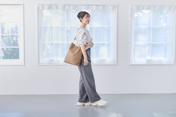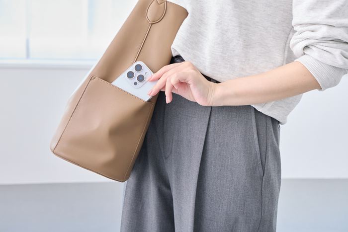 | 商品説明 | シンプルだからこそ映える、バケツ型トート。ワンハンドルの持ち手は肩掛けもスムーズ。やわらかさと適度なハリを持つ合皮が、体にしなやかに寄り添います。深さのある縦型シルエットは、A4ファイルやPCもすっきり収納。マグネットホック開閉で、荷物の出し入れがスムーズ。中身をパッと確認できてストレスなく使えます。スウェード調の風合いが感じられる一枚仕立て。リップやハンカチなどをサッとしまえる内ポケット付き。両サイドには、小物の仕分けに便利な「ルーポケット」も!スマホなど、取り出す頻度の高いアイテムを入れておけば、バッグの中で迷子になる心配もありません。きちんと感を引き立てながらも柔らかな雰囲気。カジュアルにも、きれいめにも。どんなスタイルにも寄り添います。 |