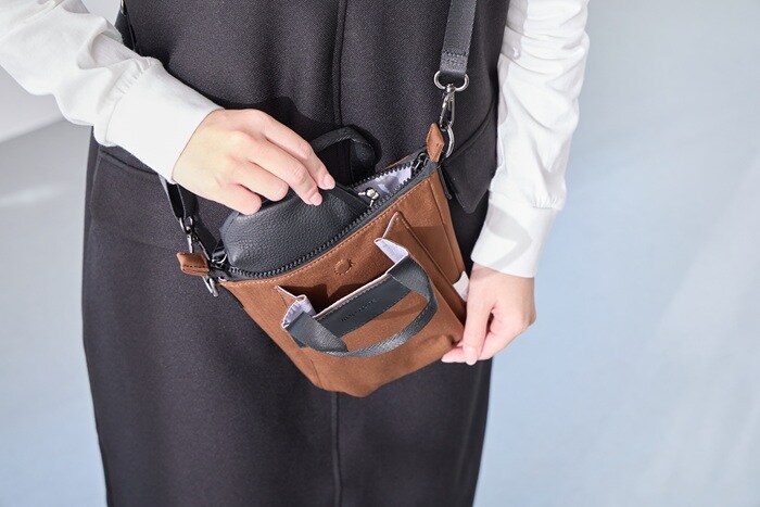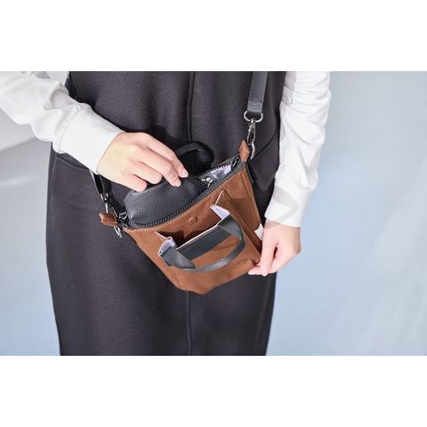 | 商品説明 | 大きく開くフロントポケットは、まるでカンガルーのおなかのポケットのよう。“パカッ”と開くユニークな仕組み。スマホなどのさっと取り出したい小物が驚くほどスムーズに出し入れできます。隠しマグネットで留められ、安心感もあります。忙しい日常のちょっとした動作がスマートになる、その小さな心地よさは、一度使うと手放せなくなるはず。コンパクトながら、ミニウォレットやハンカチなど必要なものはしっかり収納。ちょっとそこまでのお出かけなどにはこれ一つで。旅行やショッピングのときにはメインバッグと合わせて2個持ちスタイルにもぴったり。大きめの樹脂製エレメントのファスナー開閉。見た目にもアクセントとなりつつ、滑らかに開け閉めできる快適な操作感。ショルダーベルトは取り外し可能で、長さの調整も自由自在。肩掛けや斜め掛けでアクティブに使えるショルダーバッグとしてはもちろん、ベルトを外せばすっきりとしたミニトートに早変わり。シーンに合わせた使い分けが楽しめます。落ち着いたダークトーンでまとめたシックなカラーバリエーション。華美になりすぎず、活動的な大人の女性の日常に自然となじみます。控えめながらも洗練された存在感で、オンにもオフにも寄り添ってくれるのが魅力です。“気張らず、でも手を抜かない”そんな等身大のおしゃれを楽しみたい大人の女性におすすめ。暮らしの中で自然体で持てるデザインだからこそ、毎日のお出かけに寄り添い、使うほどに愛着が深まります。ルーポケットのある暮らしで、もっと自由で、もっと心地よいおしゃれを楽しんでみませんか? |