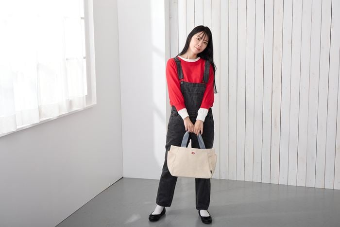 | 素材 | 表地:綿(裏PVCラミネート加工)/持ち手:ポリエステル/留め具:ドットボタン |