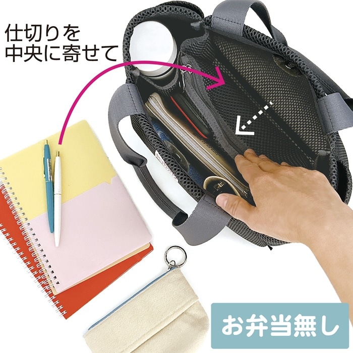 | 商品説明 | 何がどこにあるのかひと目でわかる!荷物をきちんと整理して収納できるルートート「Parootie(パルーティ)」Parootie【パルーティ】とは?フランス語の “パーツ・部分” を意味する Partie(パルティ)から命名しました。パーテーションの由来となる Part のフランス語です。ルートートの「roo(ルー)」をトートの仕切りの様に組み込みました。コロンとした丸みのあるかわいいフォルムと軽さが魅力。それでいて、しっかりと自立する使い勝手の良さがポイントです。フワっと軽やか、暑い季節にもベタ付きにくいメッシュ素材。サラリとした手触りで気持ちいい。長めのハンドルで肩掛けもしやすいつくり。「収納上手」になれる!バッグの中で散らかってしまいがちなアイテムを整理整頓。たっぷり荷物が入り、荷物の仕分けがしっかりできます。可動式ファスナー付きポケットで仕切られた4つのお部屋。荷物を立てて収納することもできるので、中身がひと目でわかり、必要なものをサッと取り出せます。荷物に応じて使い分けが可能。仕切りを移動させれば、ごちゃつく荷物もすっきり収納。片側に寄せて全体のスペースを広く使うこともできます。底マチが広く、ランチボックスなども入ります。両サイドのルーポケット入り口が、斜めにカットされているのもポイント。見た目のアクセントになるだけでなく、すぐに出したいものの出し入れがスムーズに行えます。ハンカチやパスケースなどの小物の収納に。シンプルだけど、機能的。お出かけを心地よく。 |